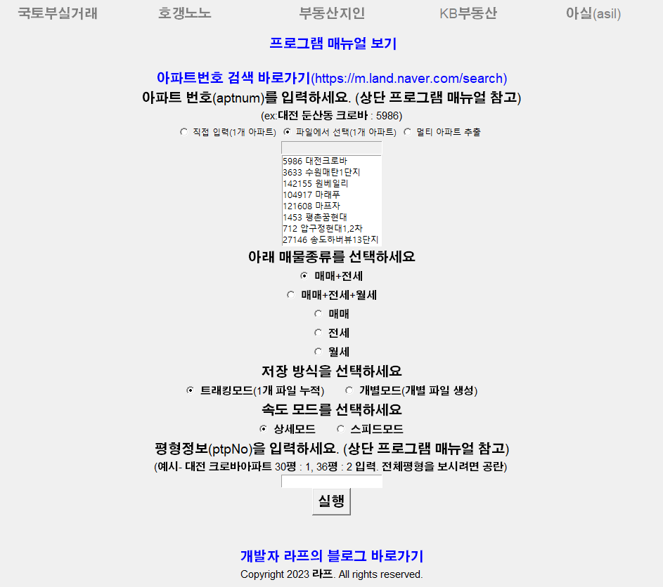 네이버 부동산 아파트 매물 시세 트래킹 자동 저장 프로그램